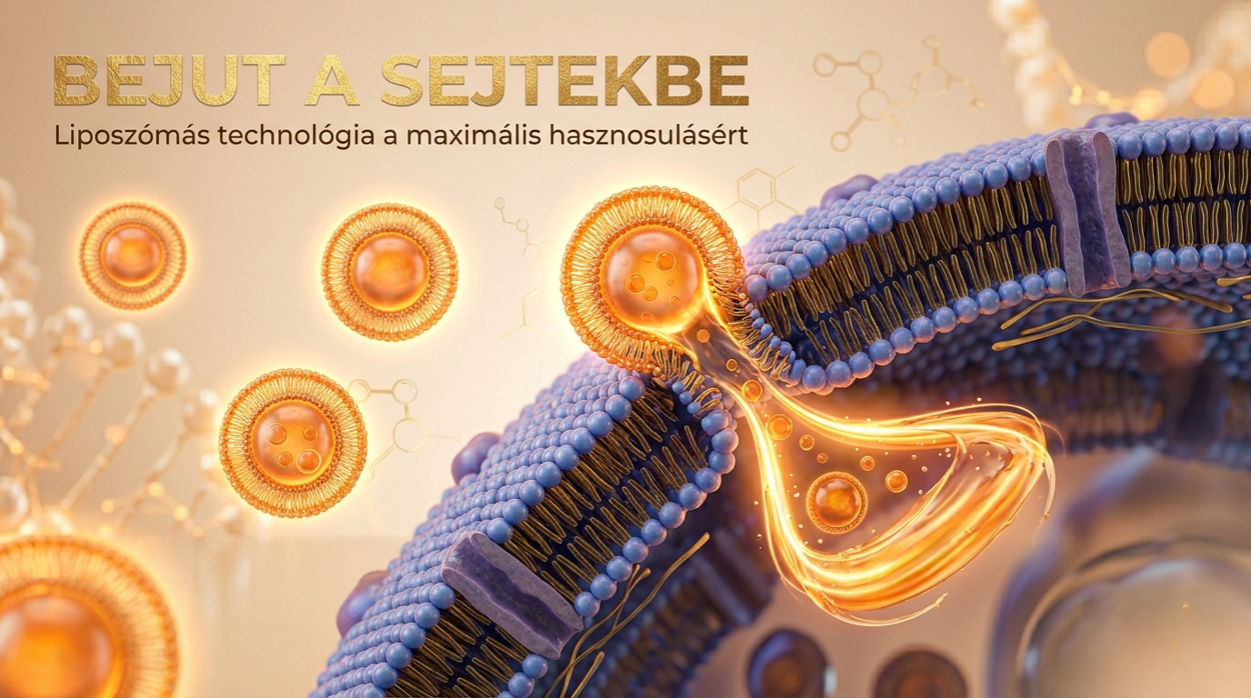 Liposzómás termékeinkben a hatóanyagokat a sejtjeink membránjához nagyon hasonló, természetazonos foszfolipid burokba zárjuk. Az apró, csak mikroszkóppal látható liposzóma golyócskák sértetlenül szállítják magukkal az emésztőrendszeren át a vitaminokat és egyéb hasznos anyagokat, egészen a vékonybélig. Onnan a liposzómák közvetlenül kerülnek be a vérkeringésbe, és jutnak el a sejtekhez. A találkozáskor a sejthártya és a liposzomális burok egyesül egymással, így közvetlenül átadva a hatóanyagokat a sejtnek, amely hasznosítja azokat.