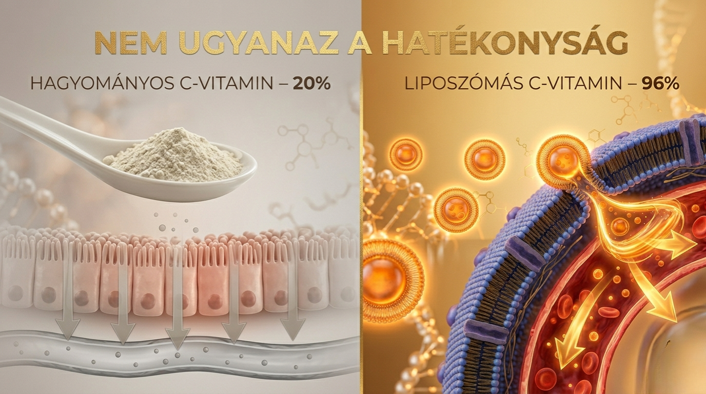 A hagyományos C-vitamin készítmények bio hasznosulása nagyjából 20%-os, azaz egy 1000 mg-os termékből maximum 200 mg szívódik fel, a fennmaradó 800 mg pedig hasznosítatlanul távozik a szervezetből. A HerbaDoctor liposzómás folyadékából ezzel szemben ugyanekkora adag bevételekor a vitamintartalom 96%-a, azaz kb. 960 mg szívódhat fel, ami közel ötszörös hatékonyságot jelent klasszikus, por, vagy tabletta formában kapható társaihoz képest.