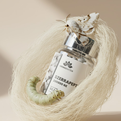 A szerrapeptázt a selyemhernyók bélcsatornájában lévő baktérium állítja elő abból a célból, hogy megeméssze a bábot. A szerrapeptáz tehát egy olyan enzim, amely a fehérjék lebontásáért felel, és amelynek tabletta formájában történő előállításakor derült ki, hogy kiváló gyulladáscsökkentő és fájdalomcsillapító hatása is lehet úgy, hogy nincsenek mellékhatásai. Ez azért fontos, mert a legtöbb forgalomban lévő, hasonló problémákra használt gyógyszereknek számos nem kívánt mellékhatása létezik.